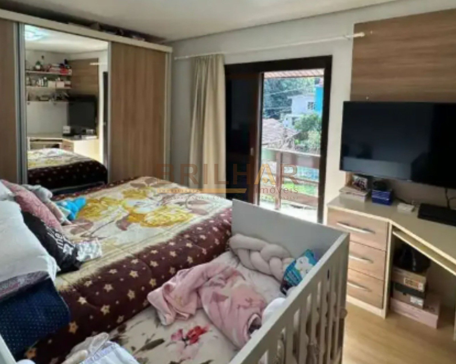 Possui no pavimento superior, 3 dormitórios (quarto de casal com sacada), banheiro social, área de serviço, cozinha sob medida e sala de estar com sacada.