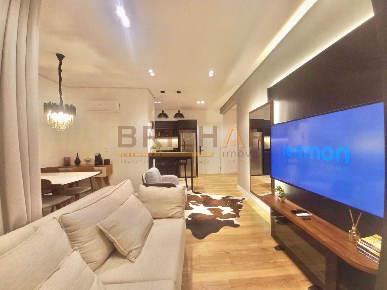 Residencial possui o apartamento localizado no 3° andar. Sala de estar e jantar integrados junto a cozinha integrada a área de serviço. Sacada com vista para o condomínio. Conta com espera para água quente e churrasqueira. Imóvel todo mobiliado, ficam 2 ar-condicionados, todos os móveis e eletrodomésticos e demais acessórios que já estão no apartamento (panelas, talheres, tudo que está no imóvel).