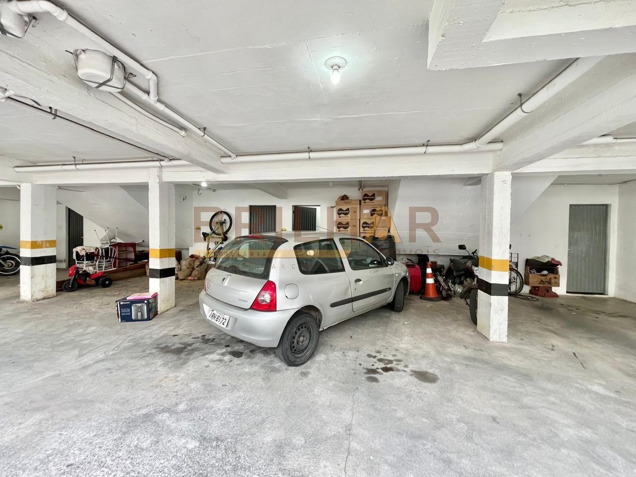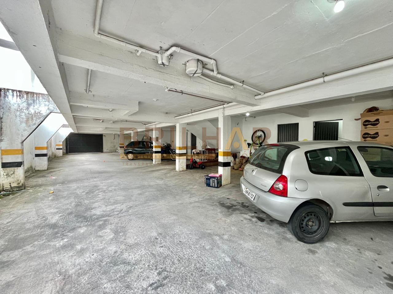 Subsolo com um box de garagem coberto para dois carros